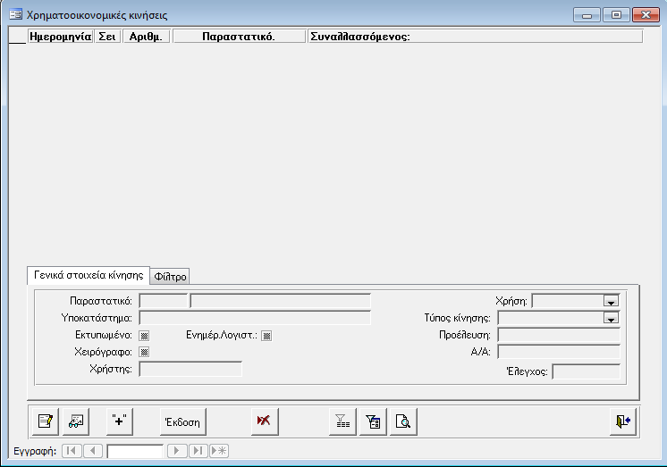 Εμφανίζεται λίστα των Χρηματοοικονομικών Κινήσεων που υπακούουν στο ορισθέν φίλτρο.