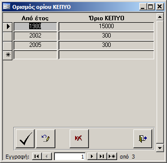 Στην φόρμα αυτή καταχωρέιται το έτος και το όριο ποσού των παραστατικών προμηθευτών- πελατών για την υποβολή στην εφορία.