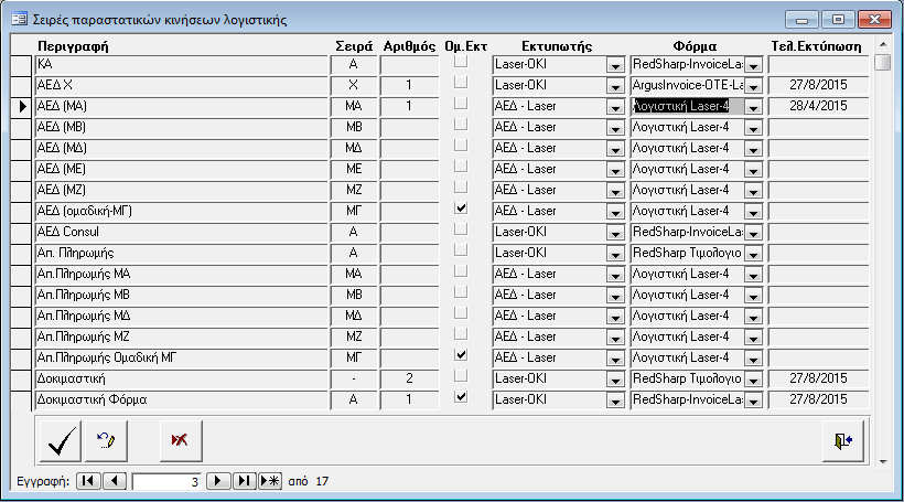 - Τελευταία Εκτύπωση (η ημερομηνία που έγινε η τελευταία εκτύπωση από αυτή την Σειρά. Η εφαρμογή ενημερώνει αυτόματα αυτό το στοιχείο).