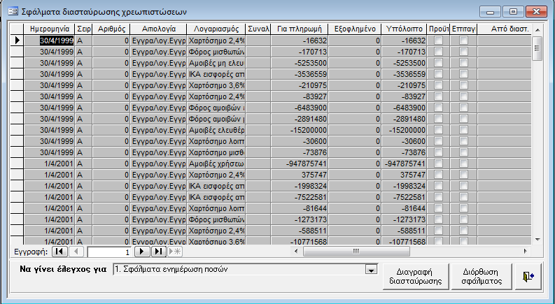 Σφάλματα μπορεί να προκύψουν π.χ. αν μία κίνηση προέρχεται από επιταγή και μετά την διασταύρωση, ο χρήστης μεταβάλλει το ποσό της επιταγής.