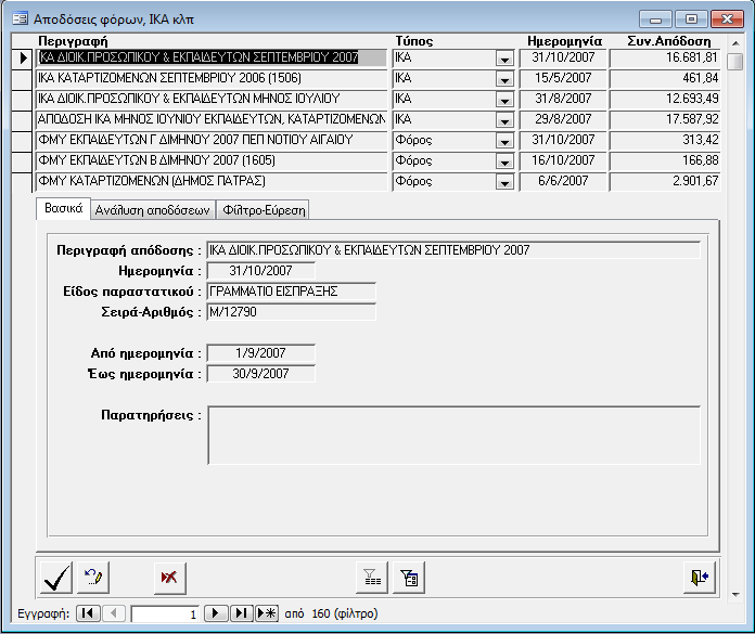 Αποδόσεις φόρων, ΙΚΑ κλπ