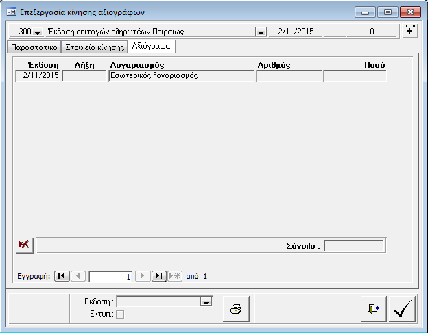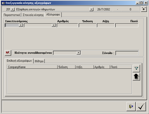 Τα πλήκτρα που εμφανίζονται για την επεξεργασία των κινήσεων των αξιογράφων είναι τα εξής: