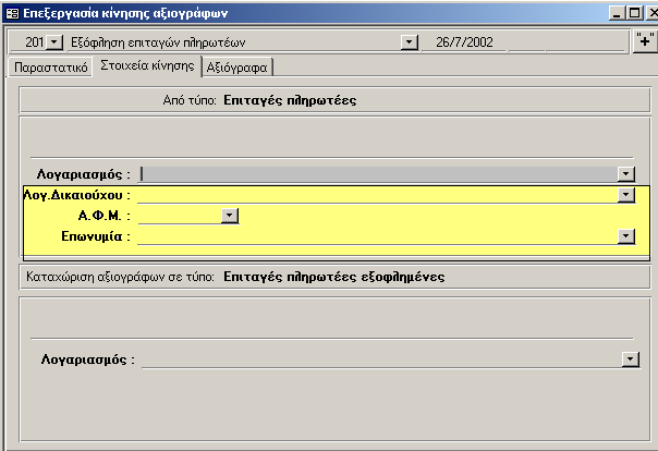 Επεξεργασία κινήσεων αξιογράφων