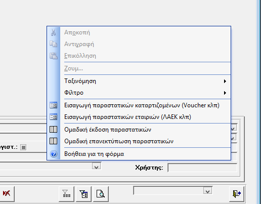 Υπάρχει μια σειρά λειτουργιών στο δεξιό μενού στη φόρμα αυτή που διευκολύνει ιδιαίτερα την λειτουργία, αυξάνει την ταχύτητα και μειώνει τον χρόνο που απαιτείται.