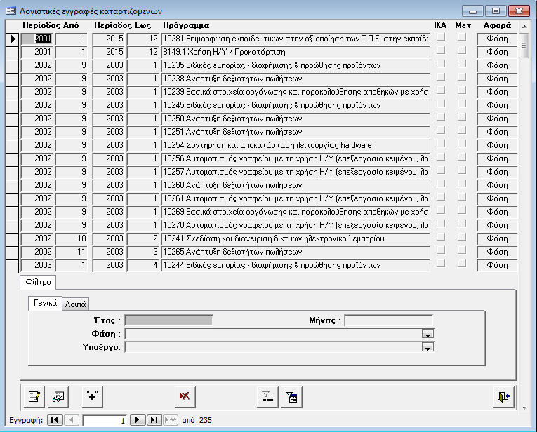 - Το πρόγραμμα για το οποίο έγιναν λογιστικές εγγραφές
