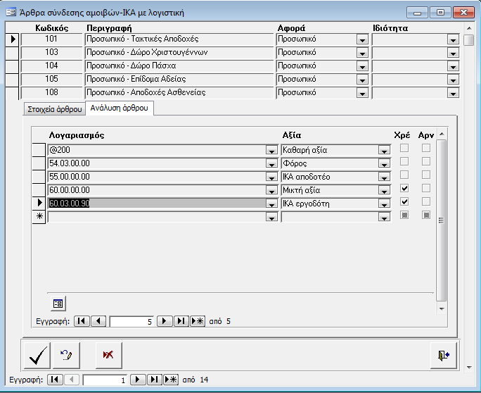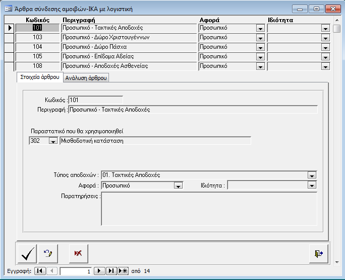 - Τον τύπο αποδοχών για τις οποίες δημιουργεί εγγραφές αυτό το άρθρο