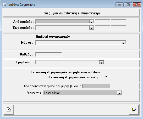 - Βαθμός (ο βαθμός των λογαριασμών για τους οποίους θέλουμε Ισοζύγιο)