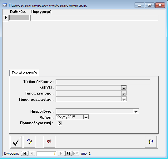 Στην οθόνη αυτή δημιουργούνται τα παραστατικά κινήσεων.