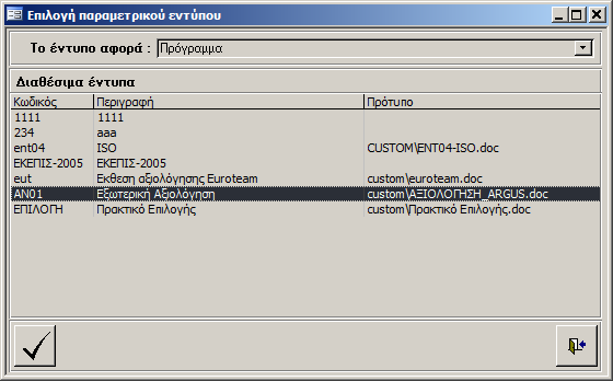 Επιλέγουμε το παραμετρικό έντυπο και με το κουμπί