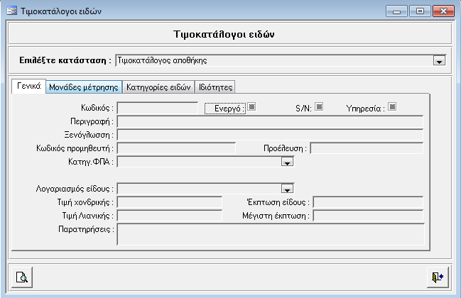 Δίνεται η δυνατότητα να εκτυπωθούν Τιμοκατάλογοι Ειδών τα οποία υπακούουν στο φίλτρο που έχει οριστεί.