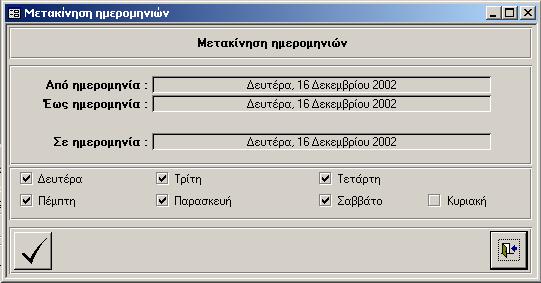 και η εφαρμογή μετακινεί τις ημέρες που περικλείονται από το ΑΠΟ έως το ΕΩΣ στην ημερομηνία που δηλώνεται στο ΣΕ ΗΜΕΡΟΜΗΝΙΑ.
