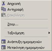 Στην οθόνη καταχώρησης του ωρολογίου και πάνω στις ημερομηνίες με δεξί κλικ εμφανίζεται το παρακάτω αναδυόμενο μενού: