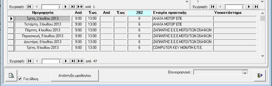 μπορείτε να αντιγράψετε αυτούσιο το ωρολόγιο από άλλον καταρτιζόμενο ή να ενημερώσετε την εταιρία πρακτικής μόνο για τον επιλεγμένο καταρτιζόμενο.