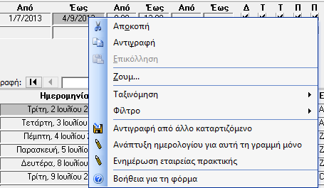 * Αντιγράψετε τις περιόδους από άλλο καταρτιζόμενο. Αυτό χρειάζεται αν έχετε πάνω από έναν καταρτιζόμενο με το ίδιο ή παρεμφερές ωρολόγιο.