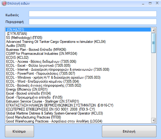 Μπορείτε να χρησιμοποιήσετε το φίλτρο προκειμένου να εμφανίσετε τα είδη που θέλετε και με CTRL-click επιλέξετε ένα ή περισσότερα, Κάνοντας κλικ στο κουμπί Επιλογή, τα εισάγετε στην ευκαιρία. |