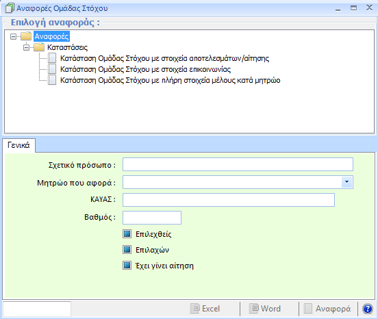 , μπορείτε να παράξετε καταστάσεις με στοιχεία αποτελεσμάτων voucher ή στοιχεία επικοινωνίας για τα μέλη της ομάδας. Μάλιστα, μέσω της χρήσης του φίλτρου, μπορείτε να παράξετε καταστάσεις για συγκεκριμένα μέλη (όπως τους επιτυχόντες, αυτούς με ή χωρίς αριθμό ΚΑΥΑΣ, κτλ).