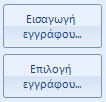 Για να εισάγετε έγγραφο(α) στο πρωτόκολλο, κάνετε κλικ σε ένα από τα δύο κουμπιά:
