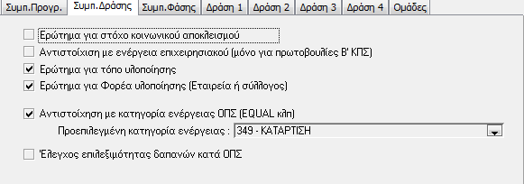 - Ερώτημα για Στόχο Κοινωνικού Αποκλεισμού (αν το πεδίο «Στόχος» θα είναι ορατό ή όχι στην οθόνη καταχώρησης δράσης)