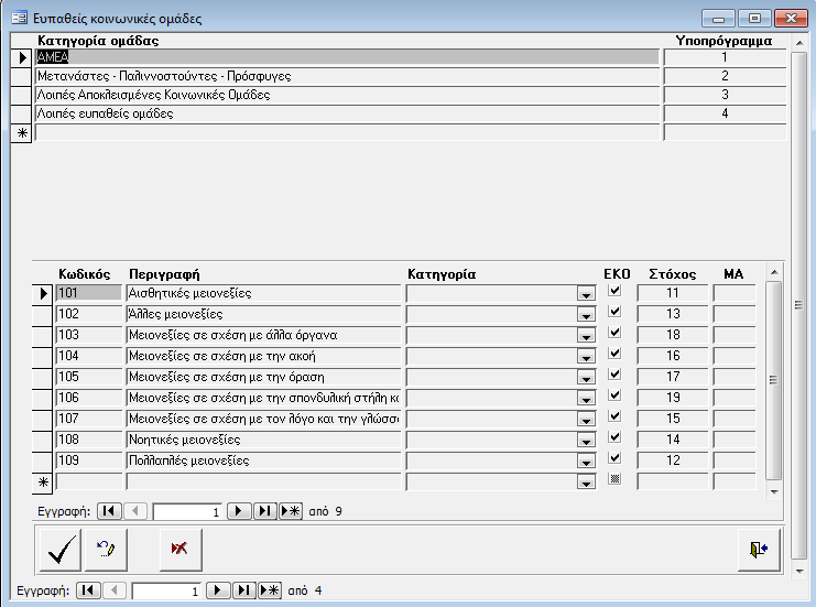 Στην οθόνη αυτή καταχωρούνται τα στοιχεία των ευπαθών κοινωνικών ομάδων