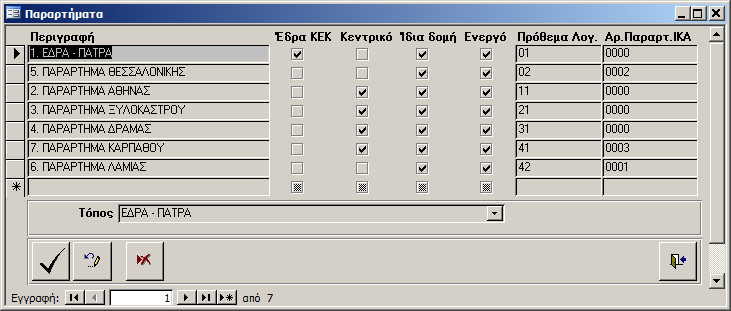 Στην οθόνη αυτή καταχωρούνται τα στοιχεία των Παραρτημάτων του ΚΕΚ.