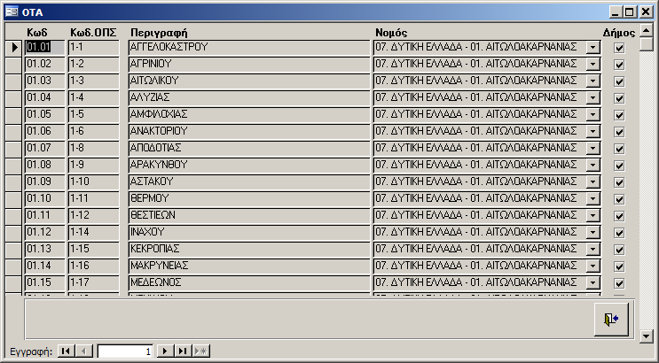 Στην οθόνη «Οργανισμοί Τοπικής Αυτοδιοίκησης (ΟΤΑ)» καταχωρούνται τα στοιχεία των ΟΤΑ.