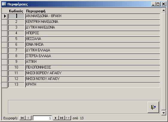 Στην οθόνη «Περιφέρειες» εμφανίζονται τα στοιχεία των Περιφερειών.