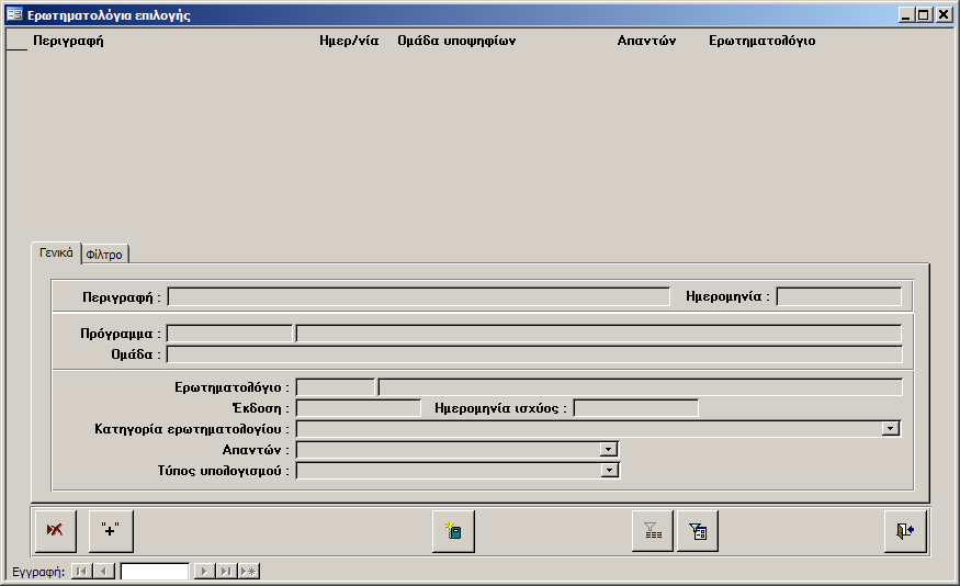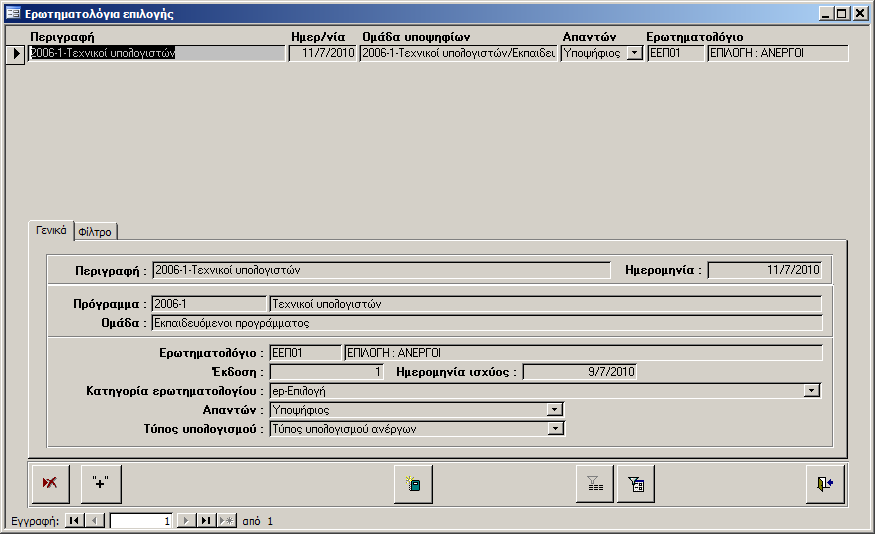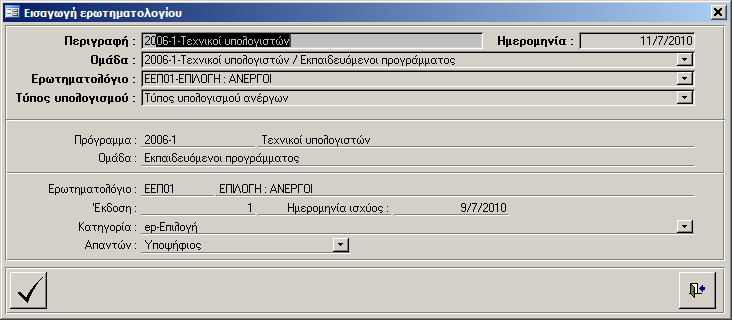 Στην διαδρομή προγράμματα-εργαλεία-επιλογή συνδέουμε το ερωτηματολόγιο επιλογής με το αντίστοιχο πρόγραμμα.