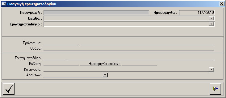 Τα στοιχεία που απαιτούνται για να καταχωρηθεί το ερωτηματολόγιο είναι τα ακόλουθα: