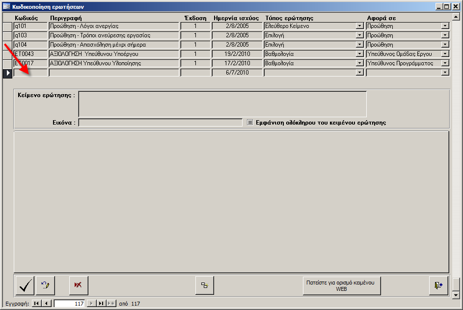 Αν θέλετε να εισάγετε νέα έκδοση υπάρχουσας ερώτησης, χρησιμοποιήστε το κουμπί