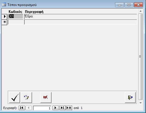 Οι περιγραφές του τόπου προορισμού που περιγράφονται σε αυτή την οθόνη χρησιμοποιούνται στα παραστατικά Αγορών και Πωλήσεων.