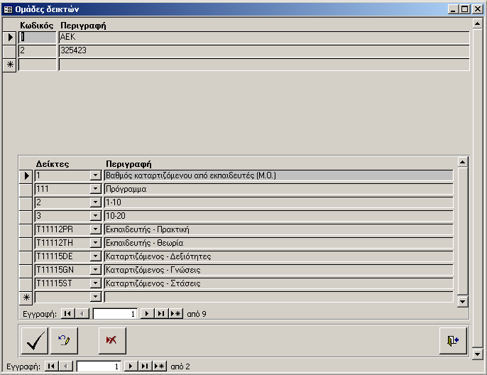Στις ομάδες δεικτών συγκεντρώνουμε του δείκτες σε ομάδες, ώστε να έχουμε την δυνατότητα να δηλώσουμε κατά επιχειρησιακό να δηλώσουμε ποια ομάδα δεικτών χρησιμοποιείται.