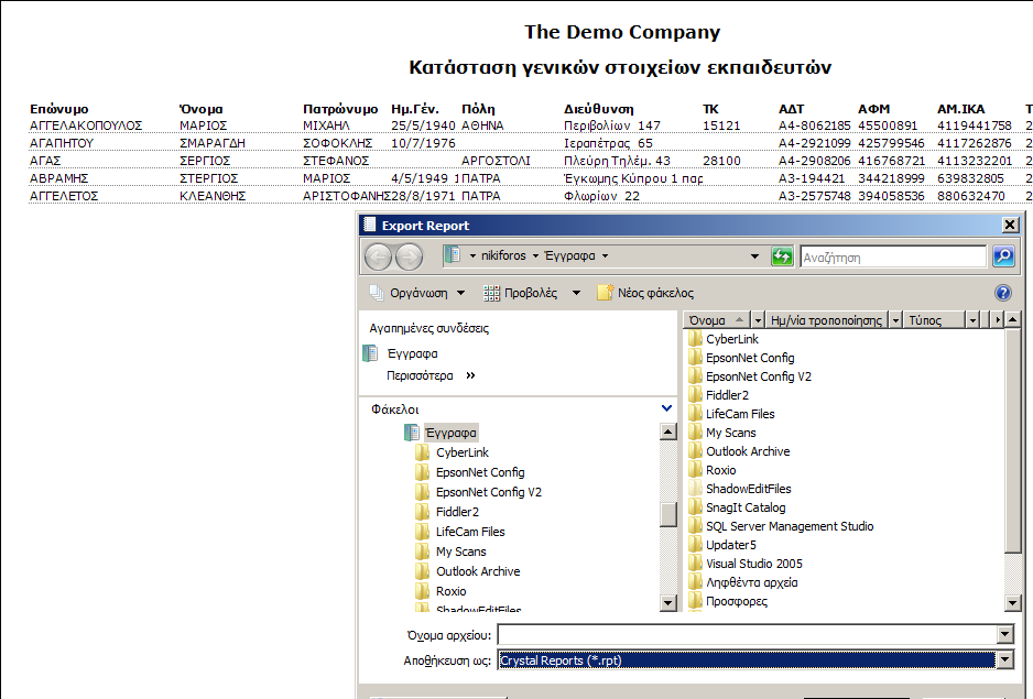 Εξαγωγή αναφοράς και δυνατότητα αποθήκευσης στην επιθυμητή μορφή