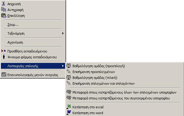 Το αναδυόμενο μενού εμφανίζεται με δεξί κλικ στην σελίδα «Υποψήφιοι».