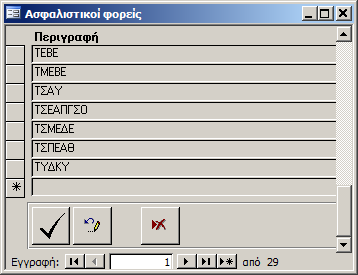Στην οθόνη αυτή συμπληρώνουμε τις ασφάλιστικούς φορείς των εκπαιδευτών.
