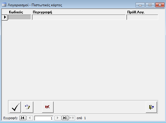 Στην οθόνη αυτή καταχωρούνται οι Πιστωτικές Κάρτες με τις οποίες γίνονται Εισπράξεις ή Πληρωμές.