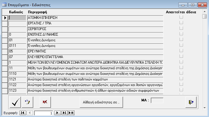 Ειδικότητες