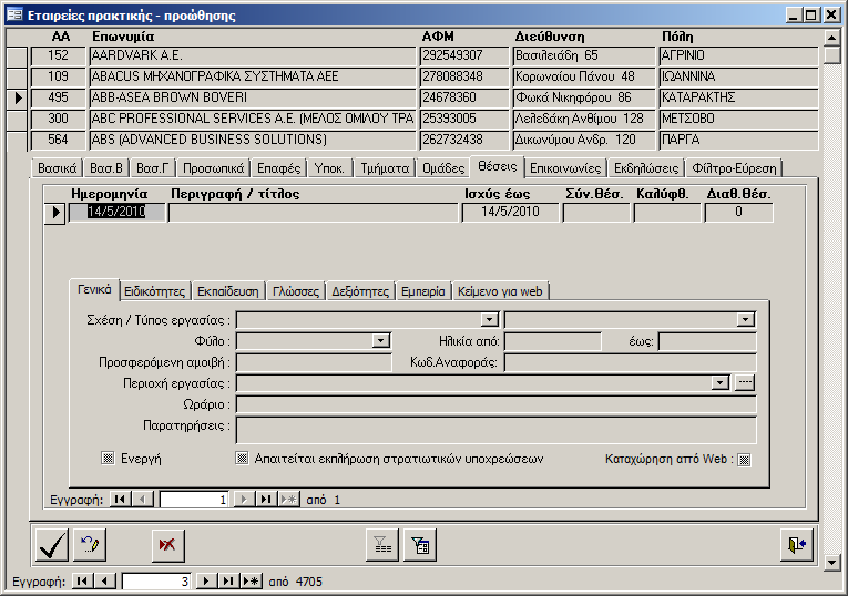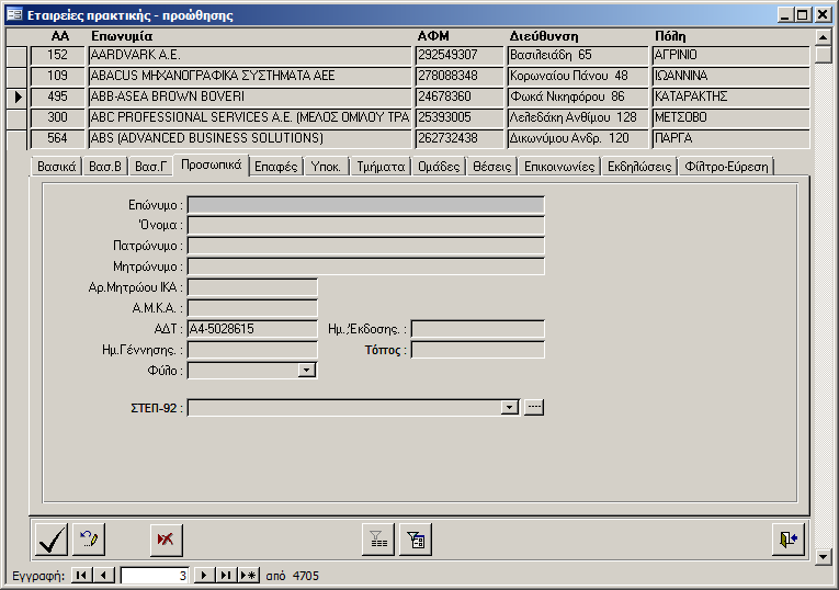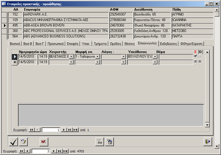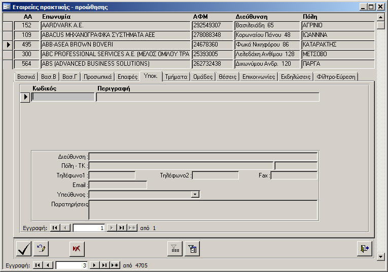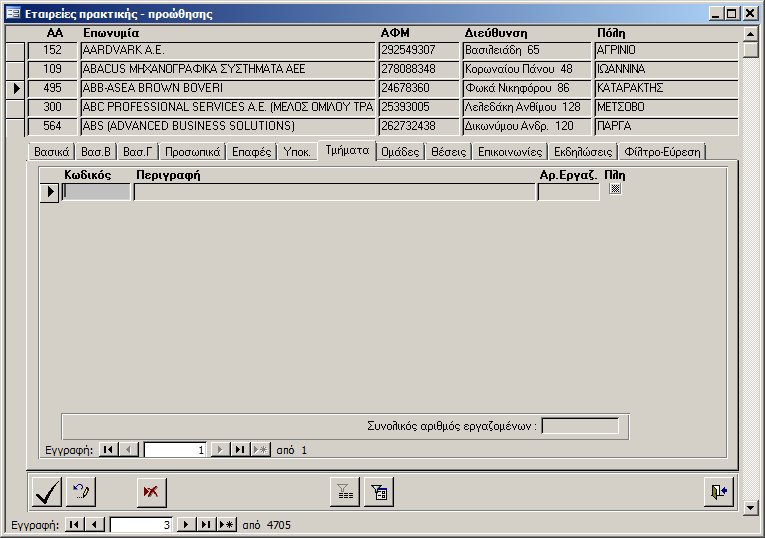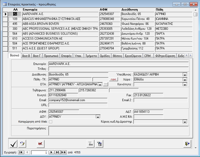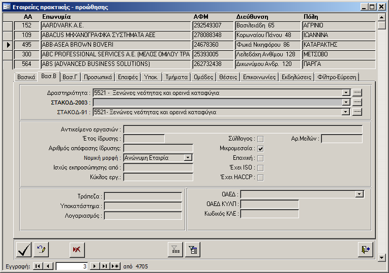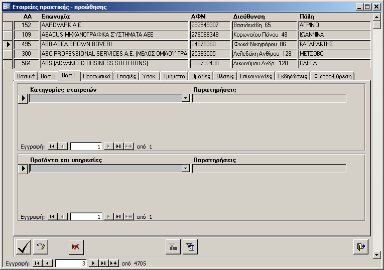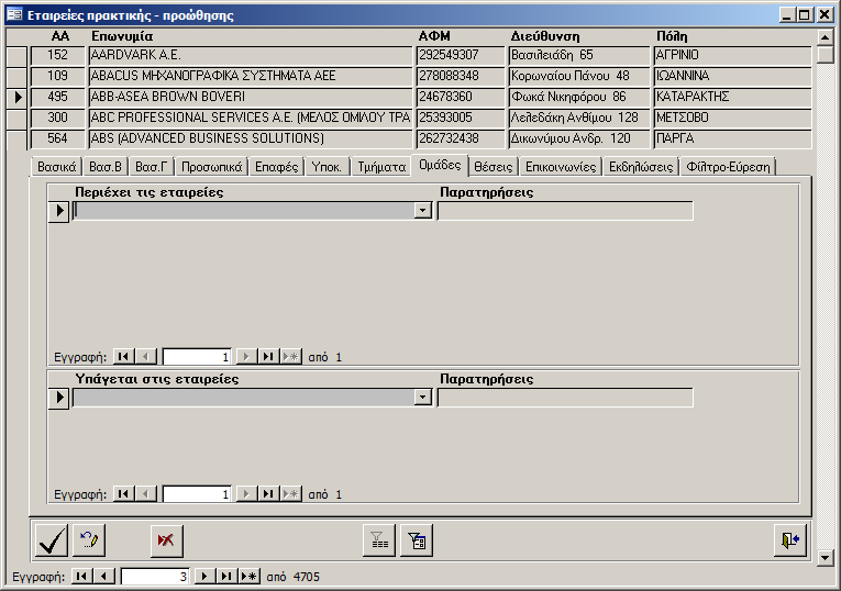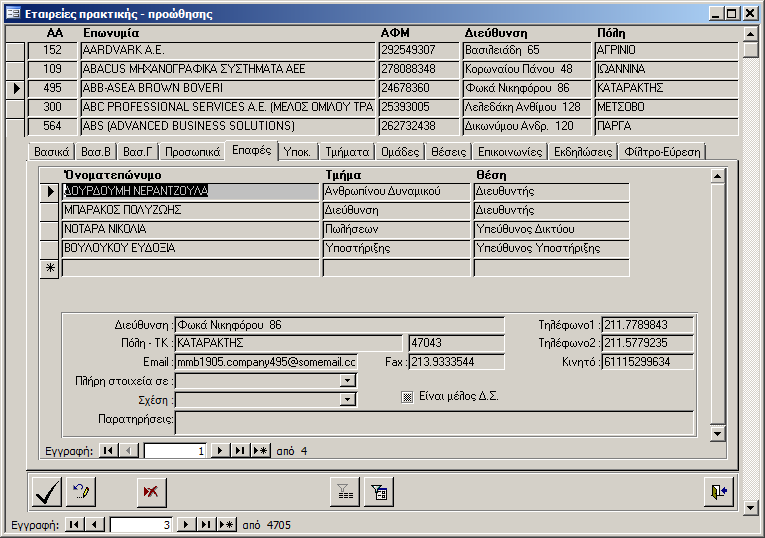 - Περιέχει τις εταιρίες. (Σε περίπτωση που η εταιρία είναι σύλλογος, καταχωρούμε τα μέλη του συλόγου).