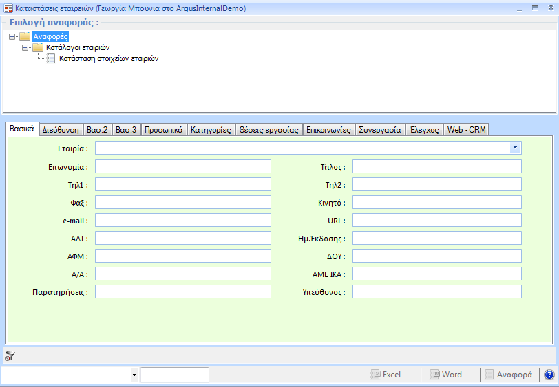 Προβολή αναφοράς και δυνατότητα αποθήκευσης σε διάφορες μορφές αρχείων.