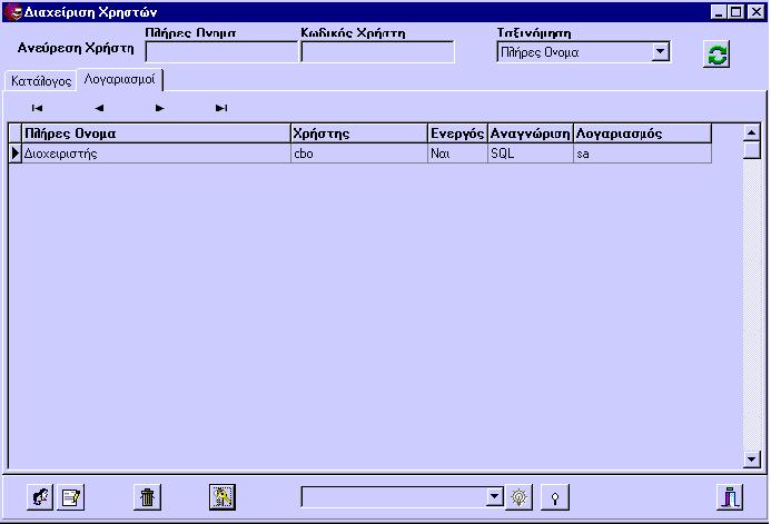 Η διαχείριση των χρηστών γίνεται με τα ακόλουθα πλήκτρα: