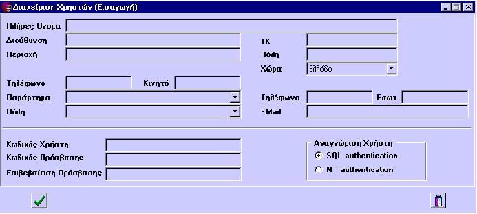 Η αναγνώριση χρήστη πρέπει να είναι SQL authentication.
