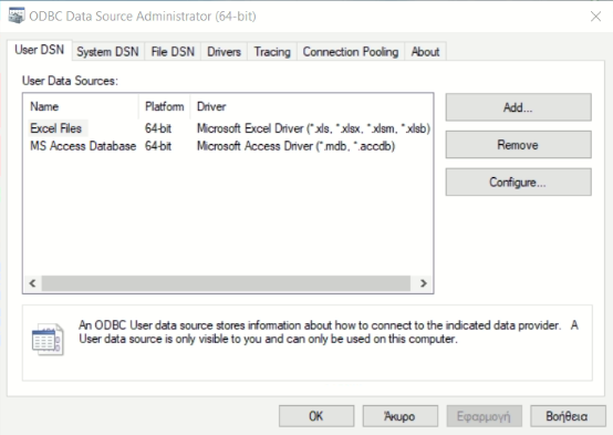 5. Δημιουργία εγγραφής DSN Συστήματος