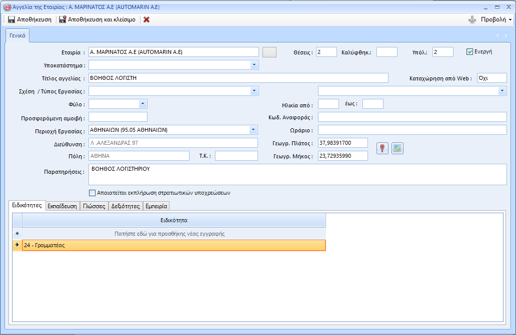 Επεξεργασία αγγελίας
