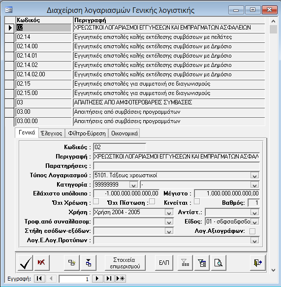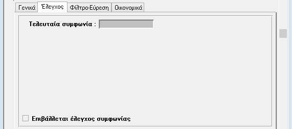 Σελίδα "Έλεγχος" : Στη σελίδα αυτή σημειώνεται η ημερομηνία κατά την οποία έχει ελεγχθεί και συμφωνηθεί το υπολοιπο του λογαριασμού. Είναι ιδιαίτερα χρήσιμο πεδίο, γιατί πριν από αυτή την ημερομηνία, το σύστημα δεν επιτρέπει την μεταβολή κινήσεων του λογαριασμού.