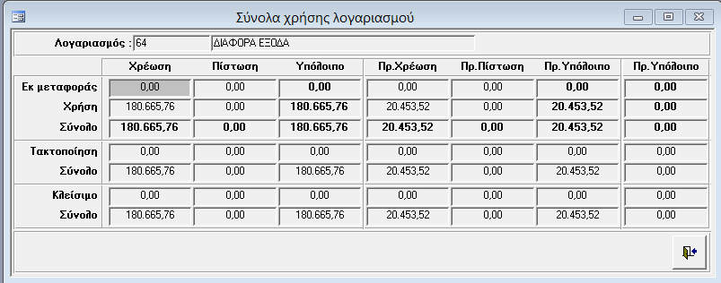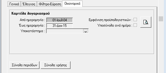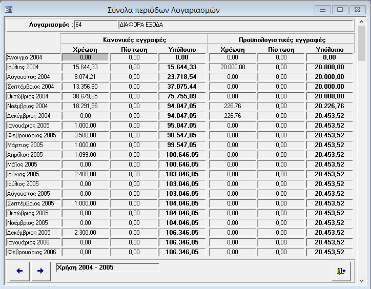 - Σύνολα περιόδων. Είναι σύνολο κίνησης λογαριασμού κατά περίοδο (μήνα)