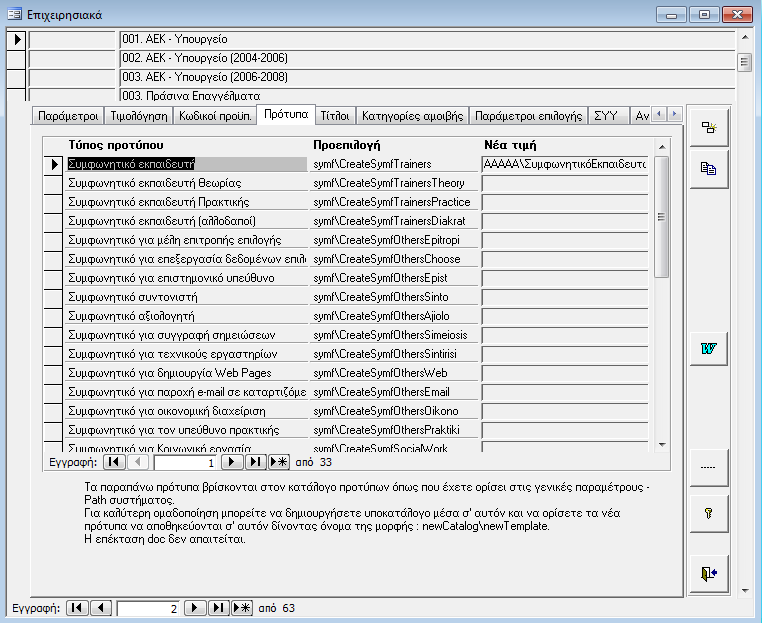 Στη σελίδα «Πρότυπα» ορίζουμε το τα συμφωνητικά και τις βεβαιώσεις οι οποίες θα χρησιμοποιηθούν για τα προγράμματα που θα υλοποιηθούν στα πλαίσια του επιχειρησιακού