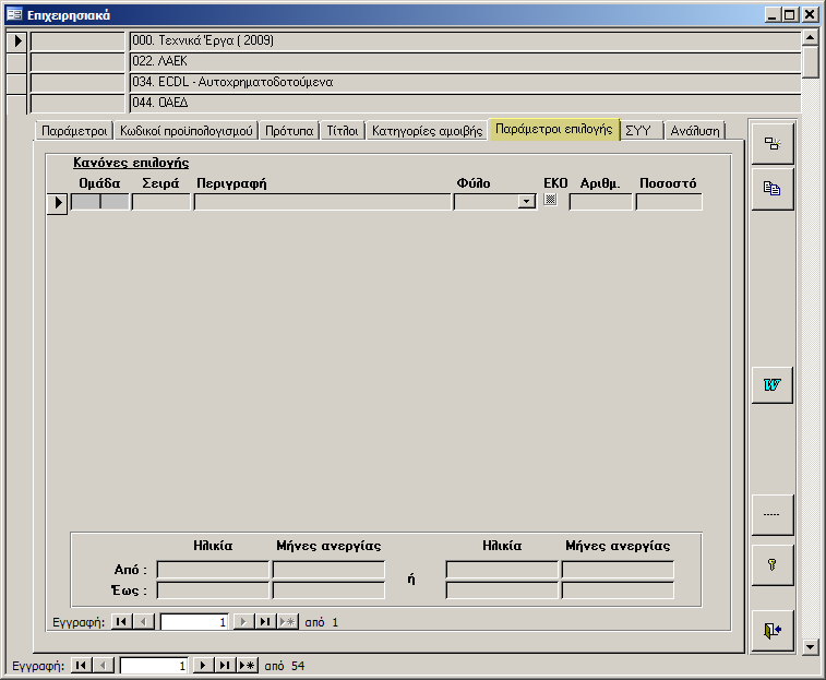 Στη σελίδα «Παράμετροι επιλογής» καθορίζουμε τις ποσοστώσεις που θα ληφθούν υπ΄οψιν στην αυτόματη διαδικασία επιλογής μέσω του Argus.