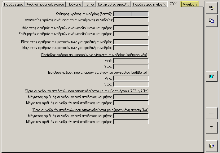 Στη σελίδα «ΣΥΥ» καθορίζουμε το πλαίσιο παραμέτρων που θα ισχύσουν στην καταχώριση και παρακολούθηση των Συνοδευτικών Υπηρεσιών.