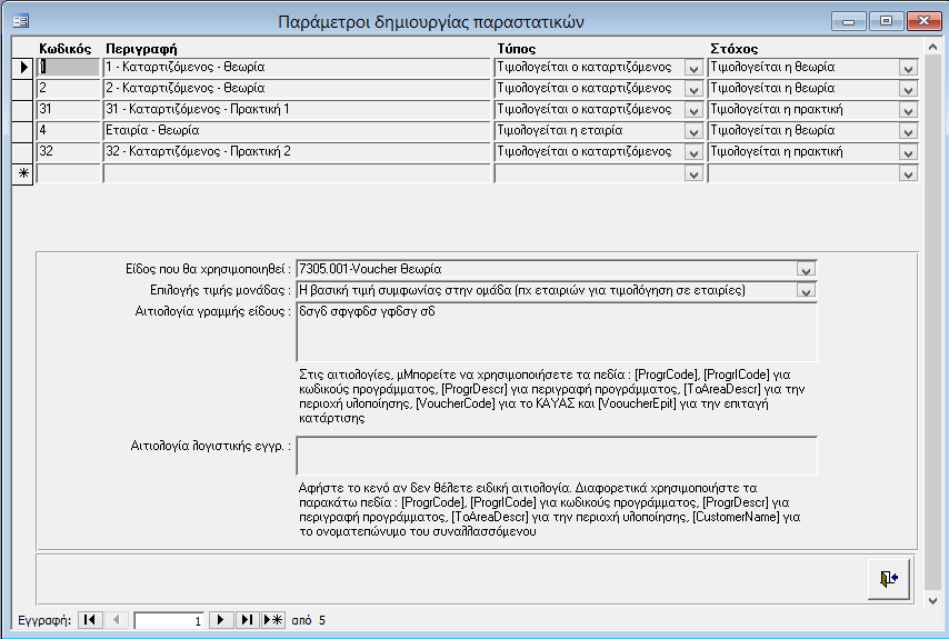 Αιτιολογίες (γραμμής είδους και λογιστικής εγγραφής) |