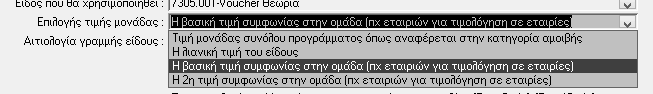 Επιλέγετε από τα είδη της εμπορικής διαχείρισης, το είδος που θα εισαχθεί στο παραγόμενο τιμολόγιο |