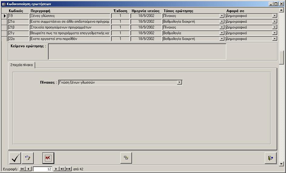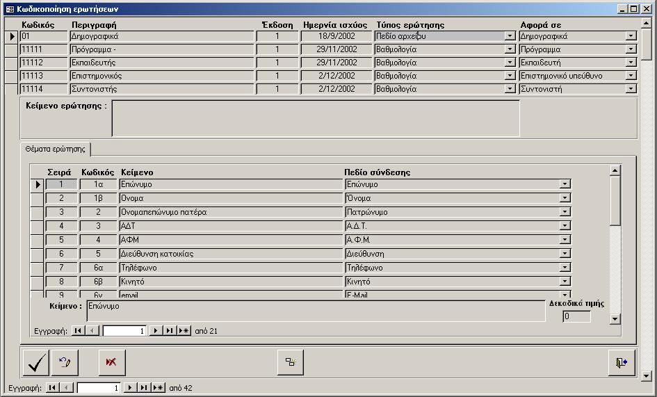 - Πεδίο αρχείου: Η ερώτηση συνδέεται με κάποιο από τα πεδία του αρχείου καταρτιζομένων.